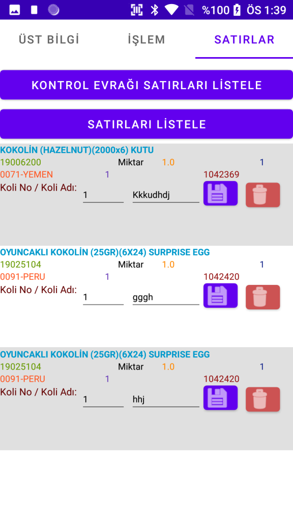 Siparişte olmasa bile parametrik olarak tanımlanan Paletlere Siparişle Sevkiyat,Mal Kabul, Depo Transfer, Mal Girişi ve Çıkışında Evrağa eklenebilmesi eklendi.